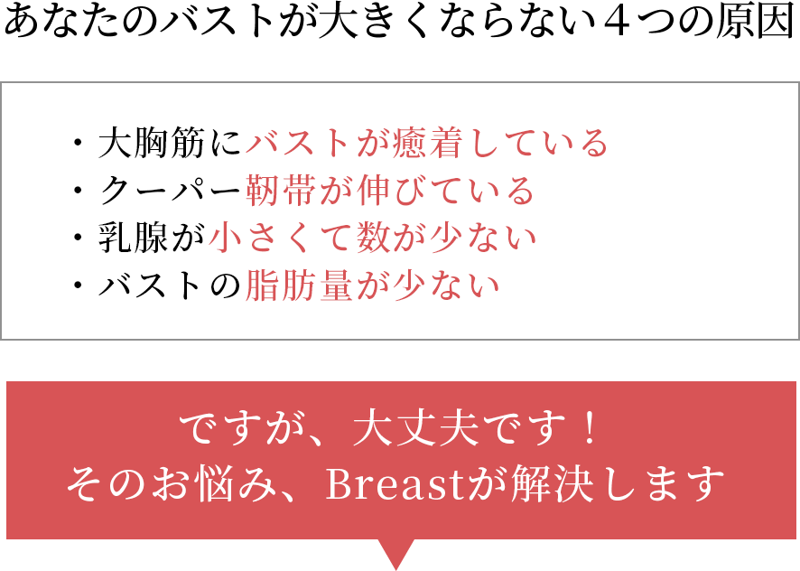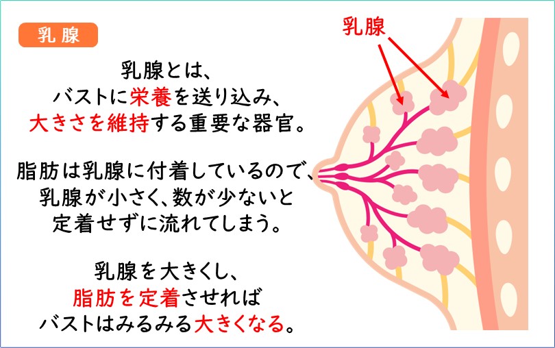 乳腺が大きくなることで、多くの脂肪を付着させることができます。そのため脂肪が流れにくくなり、全身がスッキリしてメリハリボディーになります。