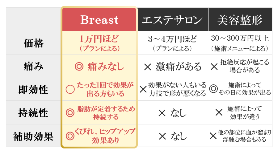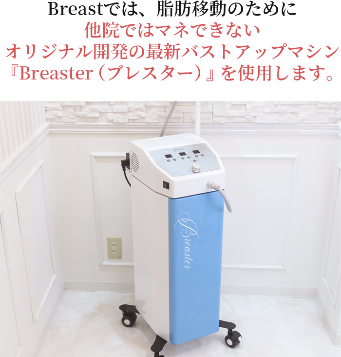 遠赤育乳マシン「ブレスター」を使い、その場で脂肪を溶かして移動させるので、